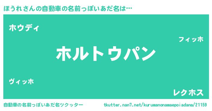 ほうれさんの自動車の名前っぽいあだ名は… 『ホルトウパン』『ホウディ』『レクホス』 ツクッター #自動車の名前っぽいあだ名ツクッター http://tkutter.nan7.net/kurumanonamaepoiadana/21159/