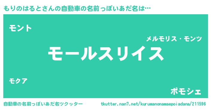 | 男性向けラノベタイトル風あだ名 | 『もりのはると~年齢イコール彼女いない歴の魔法使い~』 |