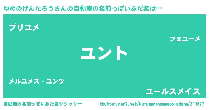 | 男性向けラノベタイトル風あだ名 | 『ゆめのげんたろうの嫁は女の子じゃないと思った?』 |