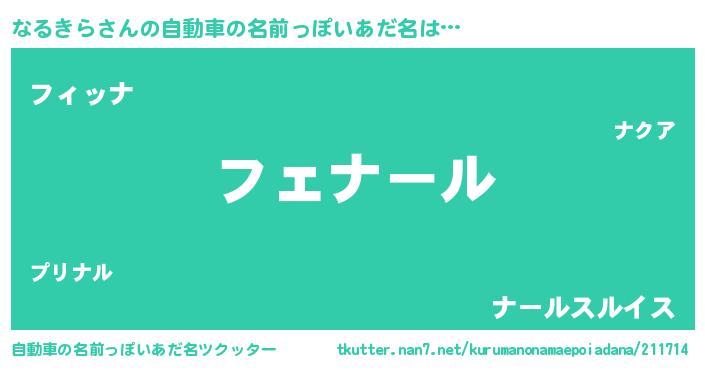 | 男性向けラノベタイトル風あだ名 | 『うちのなるきらが世界を掌握している!』 |