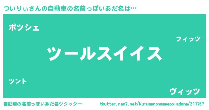 | ヒーロー風カッコイイあだ名 | 『仮面ツイダー』『ネオツイリィ』 |