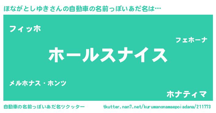 | 男性向けラノベタイトル風あだ名 | 『転生したらほながとしゆきだった件』 |