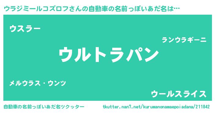 | 女子向けラノベタイトル風あだ名 | 『ウラジミールコズロフの卵を拾いまして』 |