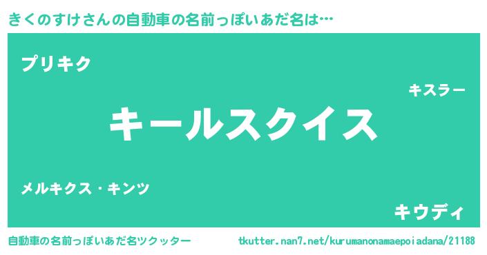 | 男性向けラノベタイトル風あだ名 | 『きくのすけ~年齢イコール彼女いない歴の魔法使い~』 |