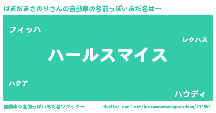| 女子向けラノベタイトル風あだ名 | 『はまだまさのりの玉の輿計画!』 |