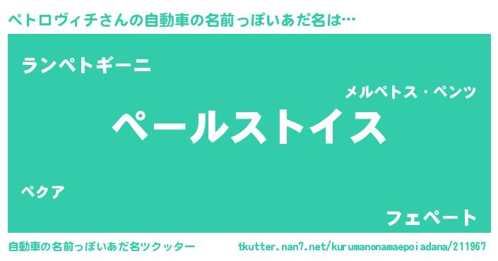 | 女子向けラノベタイトル風あだ名 | 『ペトロヴィチの玉の輿計画!』 |