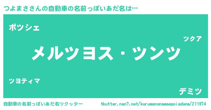 | 男性向けラノベタイトル風あだ名 | 『Re:つよまさから始める異世界生活』 |