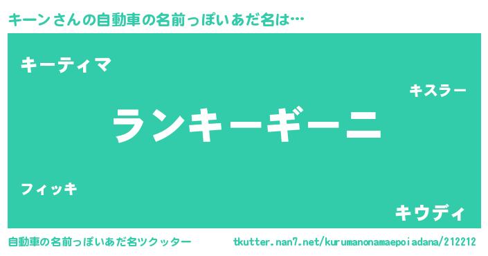 キーンさんの自動車の名前っぽいあだ名をツクッター!