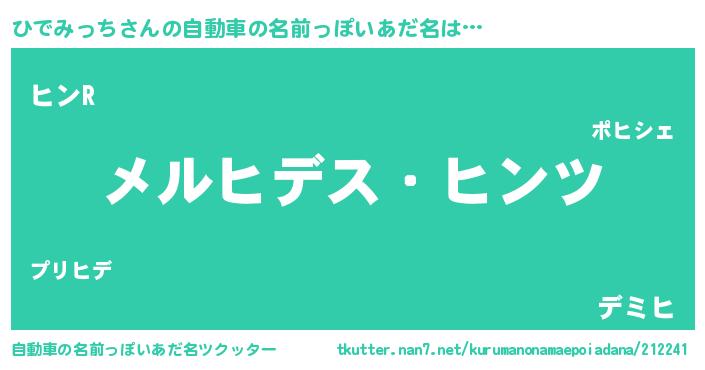 | 男性向けラノベタイトル風あだ名 | 『Re:ひでみっちから始める異世界生活』 |