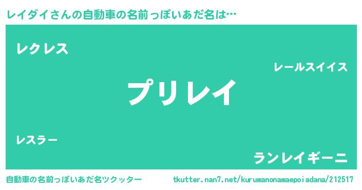 | 意味不明あだ名 | 『ペロリンレイダイ』『自称レイダイ』 |