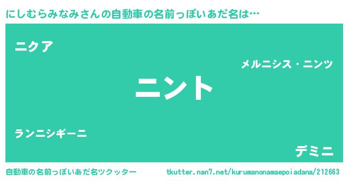 | ポケモン風あだ名 | 『ヒニシムラミナミ』『ニシムダネ』 |
