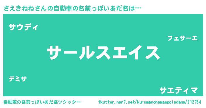 | 男性向けラノベタイトル風あだ名 | 『サエキネネスレイヤー』 |