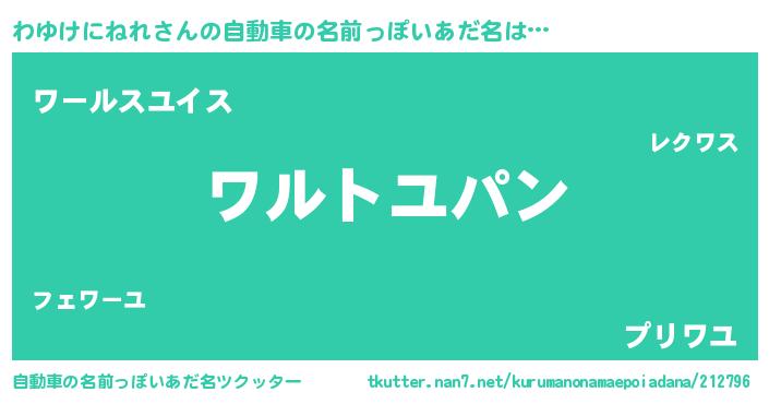| 胡散臭い通販商品みたいなあだ名 | 『信頼と実績のサプリメント…その名も「わゆけにねれ」』 |