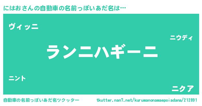 | 欧米人風あだ名 | 『アンジェラ・にはお』『ウサインにはお』 |