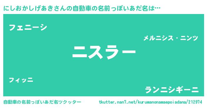 | 欧米人風あだ名 | 『にしおかしげあきクリステル』 |
