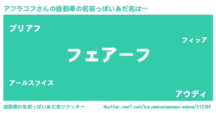 | 男性向けラノベタイトル風あだ名 | 『緋弾のアフラコフ』『アフラコフの憂鬱』 |