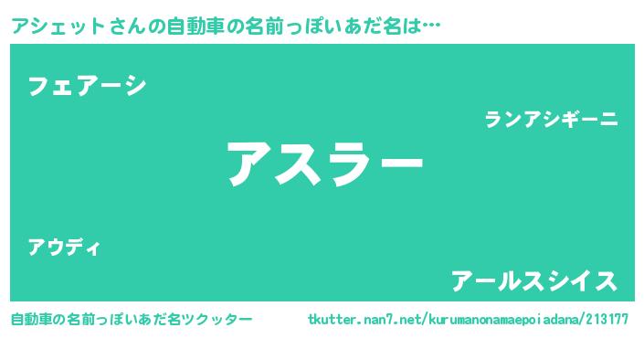 | ファンタジー風あだ名 | 『エターナルアシェットー』『アシフェル』 |