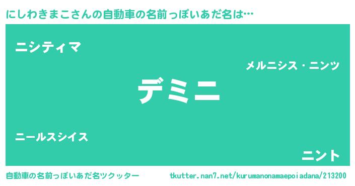 | 男性向けラノベタイトル風あだ名 | 『にしわきまこという概念が存在しない退屈な世界 』 |