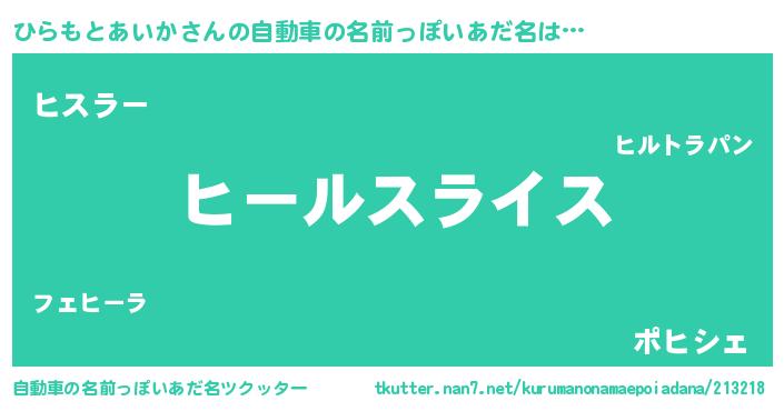 | 男性向けラノベタイトル風あだ名 | 『ひらもとあいか~年齢イコール彼女いない歴の魔法使い~』 |