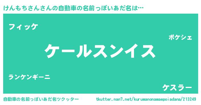 | 男性向けラノベタイトル風あだ名 | 『転生したらけんもちさんだった件』 |