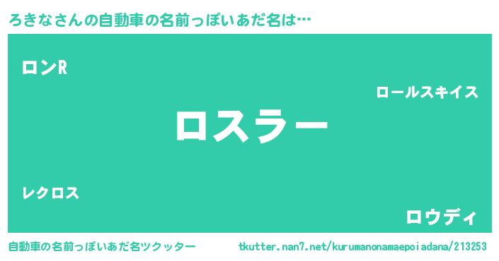 | 女子向けラノベタイトル風あだ名 | 『ろきな伯爵の花嫁』『死神ろきなの再婚』 |