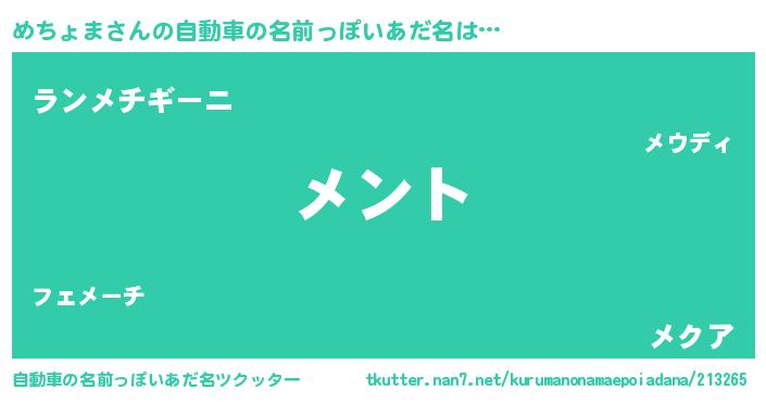 | 男性向けラノベタイトル風あだ名 | 『めちょまの嫁は女の子じゃないと思った?』 |