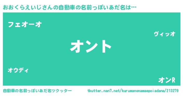 | 男性向けラノベタイトル風あだ名 | 『おおくらえいじの嫁は女の子じゃないと思った?』 |