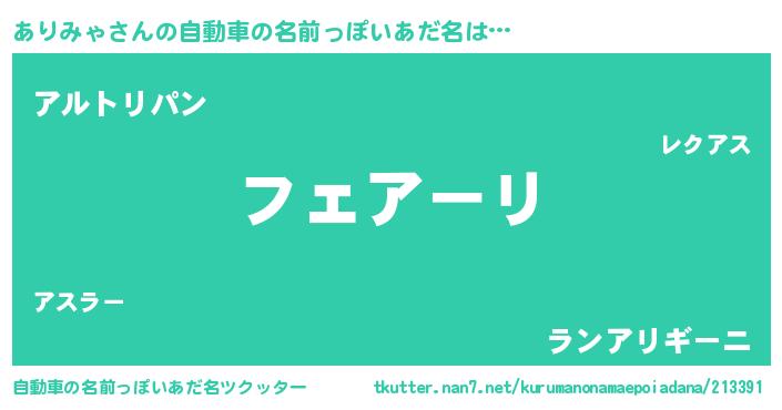 | 男性向けラノベタイトル風あだ名 | 『うちのありみゃが世界を掌握している!』 |
