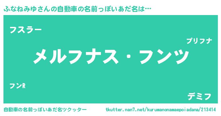 | 男性向けラノベタイトル風あだ名 | 『Re:ふなねみゆから始める異世界生活』 |