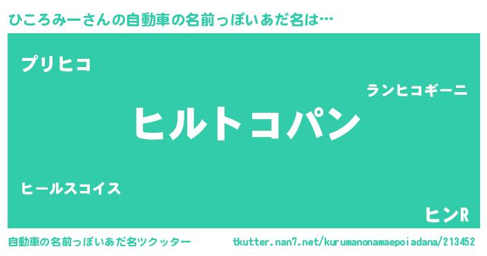 | 女子向けラノベタイトル風あだ名 | 『ひころみーの卵を拾いまして』 |