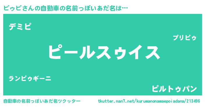 | 男性向けラノベタイトル風あだ名 | 『ピゥピスレイヤー』『ピゥピの憂鬱』 |