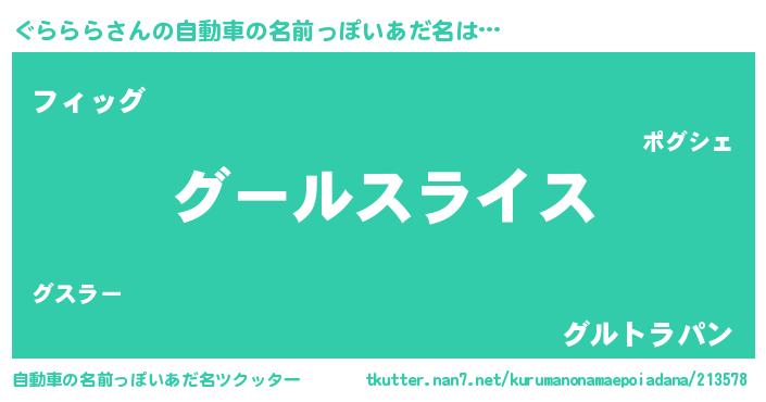 | 女子向けラノベタイトル風あだ名 | 『ぐらららの玉の輿計画!』 |