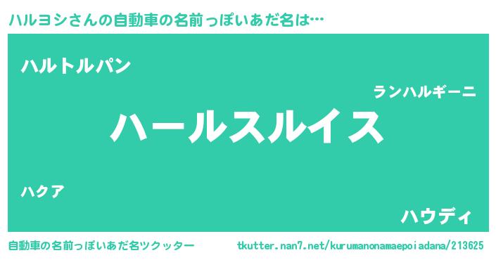| 男性向けラノベタイトル風あだ名 | 『転生したらハルヨシだった件』 |