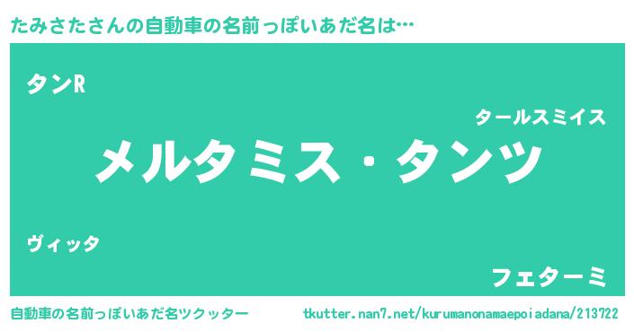 | 男性向けラノベタイトル風あだ名 | 『Re:たみさたから始める異世界生活』 |