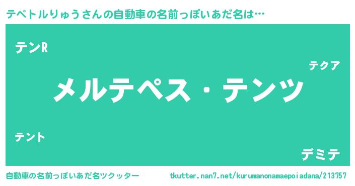 | 男性向けラノベタイトル風あだ名 | 『Re:テペトルりゅうから始める異世界生活』 |
