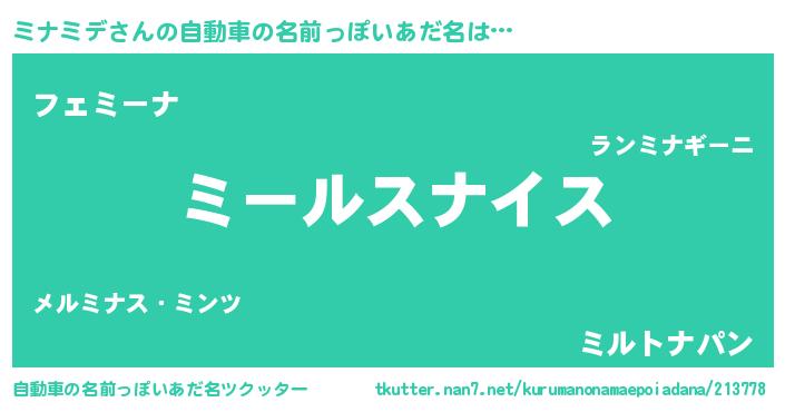 | ヒーロー風カッコイイあだ名 | 『幻影騎士ミナ』『ウルトラ戦士ミナミデ』 |
