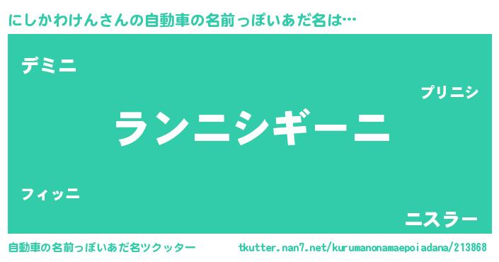 | 欧米人風あだ名 | 『アンジェラ・にしかわけん』 |