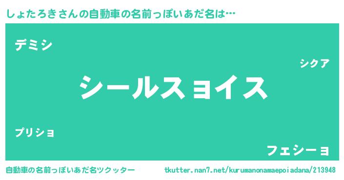 | 胡散臭い通販商品みたいなあだ名 | 『絶対に幸福をもたらす水素水…その名も「しょたろき」』 |