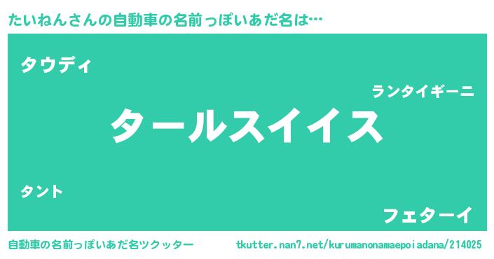 | 男性向けラノベタイトル風あだ名 | 『タイネンスレイヤー』『緋弾のタイネン』 |