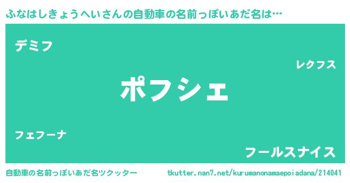 | 男性向けラノベタイトル風あだ名 | 『この素晴らしい世界にふなはしきょうへいを!』 |