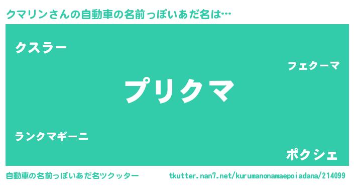 | 胡散臭い通販商品みたいなあだ名 | 『必ず成功するブレスレット…その名も「クマリン」』 |
