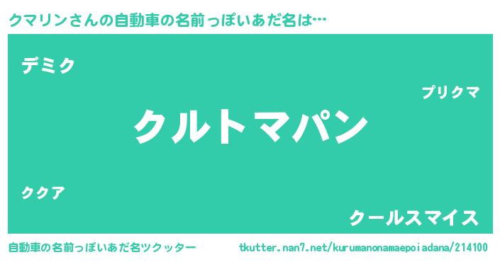 | 胡散臭い通販商品みたいなあだ名 | 『信頼と実績のネックレス…その名も「クマリン」』 |