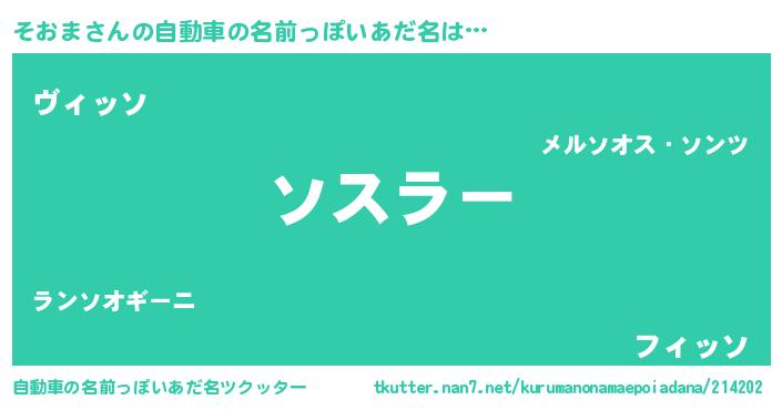 そおまさんの自動車の名前っぽいあだ名をツクッター!