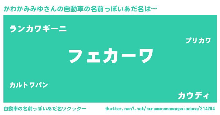 | ヒーロー風カッコイイあだ名 | 『仮面カワダー』『スーパーカワカミミユ』 |