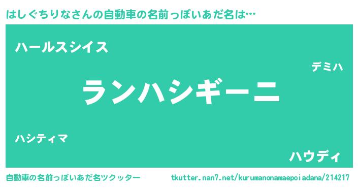 | 欧米人風あだ名 | 『アンジェラ・はしぐちりな』 |