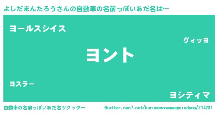 | 欧米人風あだ名 | 『ウサインよしだまんたろう』 |