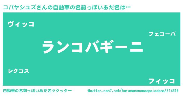 | 胡散臭い通販商品みたいなあだ名 | 『来世でも幸せになれる水素水…その名も「コバヤシユズ」』 |