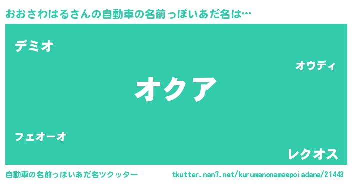 | 女子向けラノベタイトル風あだ名 | 『おおさわはるの雑貨屋さん』 |