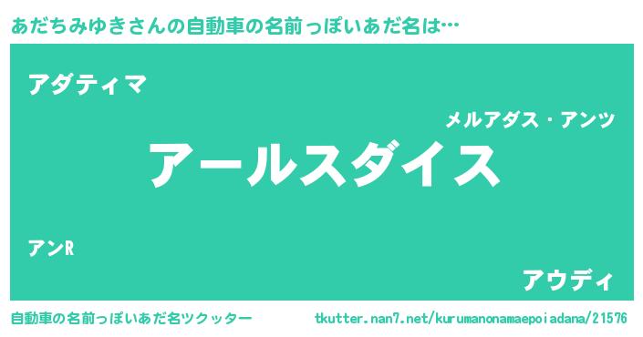 | 胡散臭い通販商品みたいなあだ名 | 『億万長者になれる霊験あらたかなお札…その名も「あだちみゆき」』 |