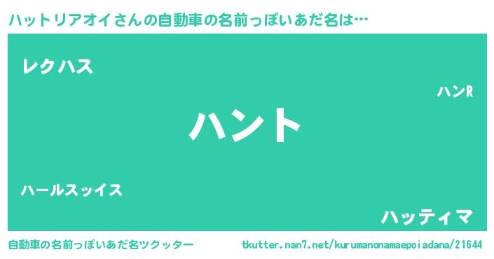 | 男性向けラノベタイトル風あだ名 | 『ハットリアオイの嫁は女の子じゃないと思った?』 |
